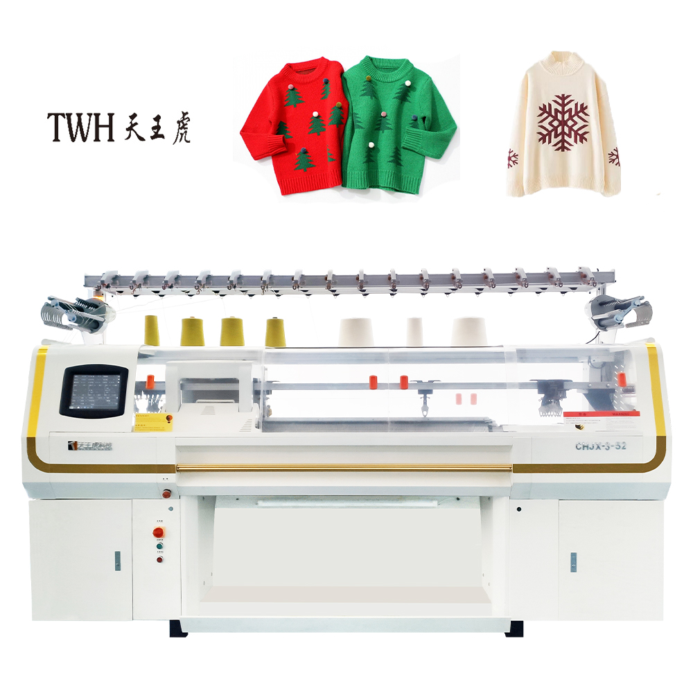 電腦橫機是一種雙針板舌針緯編織織機。它的三角裝置猶如一組平面凸輪,織針的針腳可進入凸輪的槽道內(nèi),移動三角,迫使織針在針板的針槽內(nèi)作有規(guī)律的升降運動,并通過針勾和針舌的動作,就能將紗線編織成針織物??椺樤谏仙^程中,線圈逐步退出針勾,打開針舌,并退出針舌掛在針桿上;織針在下降過程中,針勾勾住新墊放的紗線,并將其牽拉彎曲成線圈,同時原有的線圈則脫出針勾,新線圈從舊線圈中穿過,與舊線圈串聯(lián)起來,眾多的織針織成的線圈串互相聯(lián)結(jié)形成了針織物。 用于生產(chǎn)毛衣、毛衫、鞋面等產(chǎn)品